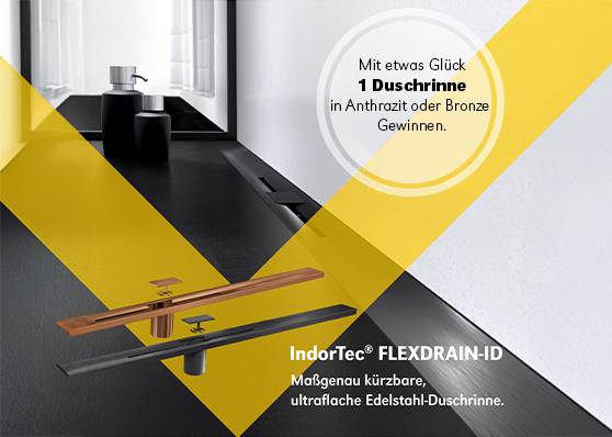Vielen dank für deine Teilnahme. Mit etwas Glück kannst du eine Gutjahr IndorTec FLEXDRAIN-ID Duschrinne in der Farbe Anthrazitmetallic oder Bronze gewinnen.Wenn du nichts mehr von uns verpassen willst, dann abboniere doch gerne unseren kostenlosen Newsletter oder folge uns auf Social Media.